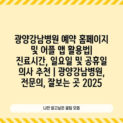 광양강남병원 예약 홈페이지 및 어플 앱 활용법| 진료시간, 일요일 및 공휴일 의사 추천 | 광양강남병원, 전연락, 잘보는 곳 2025 에 대해 자주 묻는 질문 TOP 5