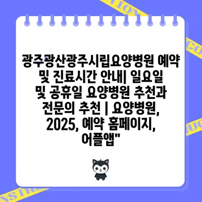 광주광산광주시립요양병원 예약 및 진료시간 공지| 일요일 및 공휴일 요양병원 추천과 전연락 추천 | 요양병원, 2025, 예약 홈페이지, 어플앱에 대해 자주 묻는 질문 TOP 5