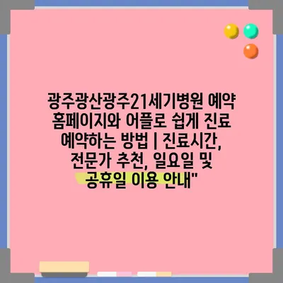 광주광산광주21세기병원 예약 홈페이지와 어플로 쉽게 진료 예약하는 방법 | 진료시간, 전문가 추천, 일요일 및 공휴일 이용 공지에 대해 자주 묻는 질문 TOP 5
