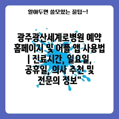 광주광산세계로병원 예약 홈페이지 및 어플 앱 사용법 | 진료시간, 일요일, 공휴일, 의사 추천 및 전문의 정보”