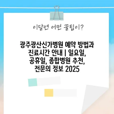 광주광산신가병원 예약 방법과 진료시간 공지 | 일요일, 공휴일, 종합병원 추천, 전연락 정보 2025에 대해 알아보겠습니다.
