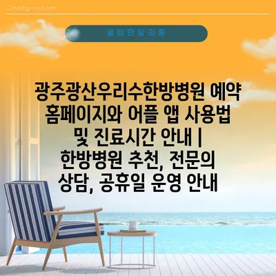 ✅ 광주광산우리수한방병원의 진료시간과 예약 방법을 알아보세요!