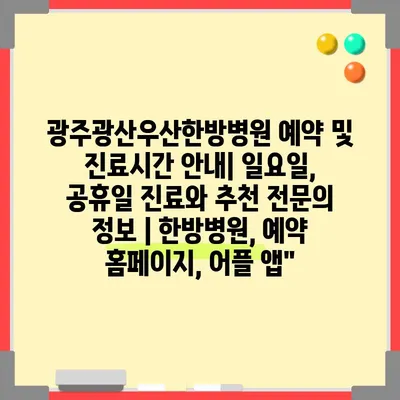 ✅ 광주광산우산한방병원 예약 방법과 진료시간을 지금 바로 알아보세요!