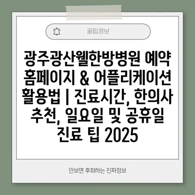 광주광산웰한방병원 예약 홈페이지 & 어플리케이션 활용법 | 진료시간, 한의사 추천, 일요일 및 공휴일 진료 팁 2025에 대해 자주 묻는 질문 TOP 5