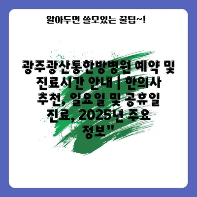 광주광산통한방병원 예약 및 진료시간 안내 | 한의사 추천, 일요일 및 공휴일 진료, 2025년 주요 정보”