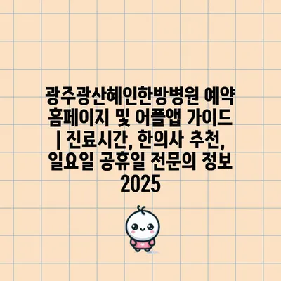 광주광산혜인한방병원 예약 홈페이지 및 어플앱 설명서 | 진료시간, 한의사 추천, 일요일 공휴일 전연락 정보 2025