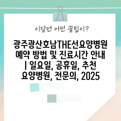 광주광산호남THE선요양병원 예약 방법 및 진료시간 공지 | 일요일, 공휴일, 추천 요양병원, 전연락, 2025 에 대해 자주 묻는 질문 TOP 5