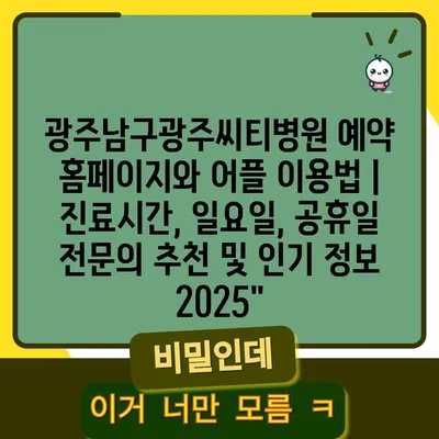광주남구광주씨티병원 예약 홈페이지와 어플 이용법 | 진료시간, 일요일, 공휴일 전연락 추천 및 인기 정보 2025에 대해 알아보겠습니다.