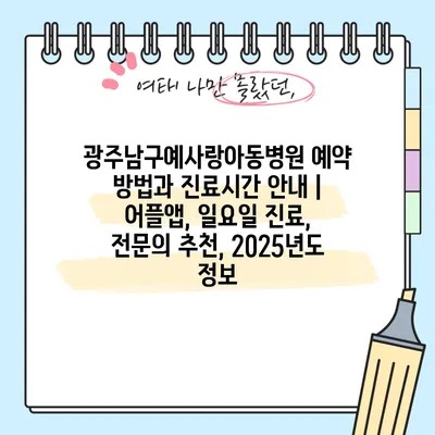 광주남구예사랑아동병원 예약 방법과 진료시간 공지 | 어플앱, 일요일 진료, 전연락 추천, 2025년도 정보 에 대해 자주 묻는 질문 TOP 5