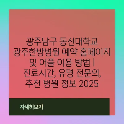 광주남구 동신대학교 광주한방병원 예약 홈페이지 및 어플 이용 방법 | 진료시간, 유명 전연락, 추천 병원 정보 2025 에 대해 자주 묻는 질문 TOP 5