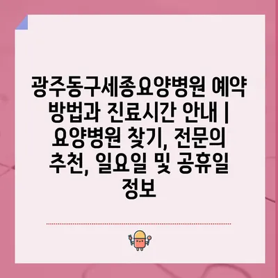 광주동구세종요양병원 예약 방법과 진료시간 공지 | 요양병원 찾기, 전연락 추천, 일요일 및 공휴일 정보에 대해 자주 묻는 질문 TOP 5