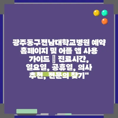 광주동구전남대학교병원 예약 홈페이지 및 어플 앱 사용 설명서 | 진료시간, 일요일, 공휴일, 의사 추천, 전연락 찾기”에 대해 자주 묻는 질문 TOP 5
