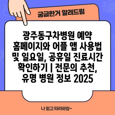 광주동구차병원 예약 홈페이지와 어플 앱 사용법 및 일요일, 공휴일 진료시간 확인하기 | 전연락 추천, 유명 병원 정보 2025에 대한 내용을 제공하겠습니다.