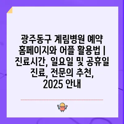 광주동구 계림병원 예약 홈페이지와 어플 활용법 | 진료시간, 일요일 및 공휴일 진료, 전연락 추천, 2025 공지 에 대해 자주 묻는 질문 TOP 5