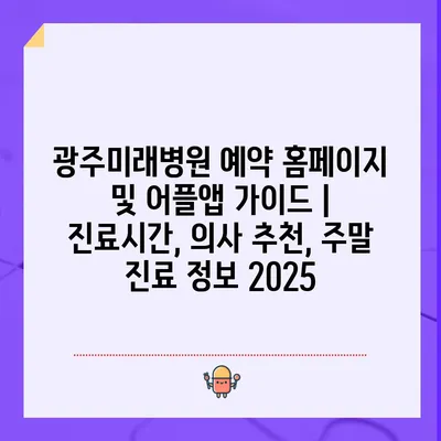 광주미래병원 예약 홈페이지 및 어플앱 설명서 | 진료시간, 의사 추천, 주말 진료 정보 2025 에 대해 자주 묻는 질문 TOP 5