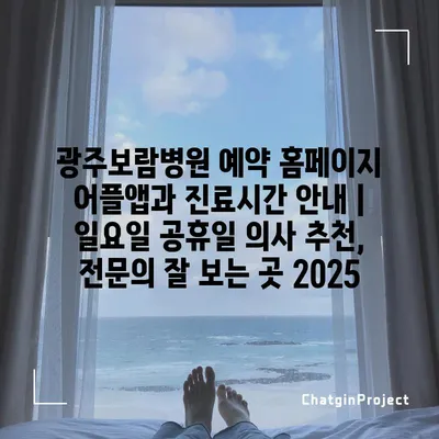 광주보람병원 예약 홈페이지 어플앱과 진료시간 공지 | 일요일 공휴일 의사 추천, 전연락 잘 보는 곳 2025에 대해 알아보겠습니다.