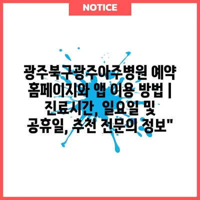 광주북구광주아주병원 예약 홈페이지와 앱 이용 방법 | 진료시간, 일요일 및 공휴일, 추천 전문의 정보”