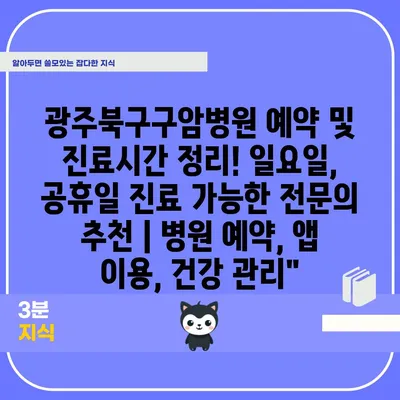 광주북구구암병원 예약 및 진료시간 정리! 일요일, 공휴일 진료 가능한 전연락 추천 | 병원 예약, 앱 이용, 건강 관리에 대해 자주 묻는 질문 TOP 5