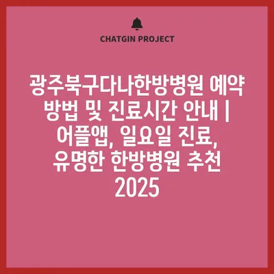 광주북구다나한방병원 예약 방법 및 진료시간 공지 | 어플앱, 일요일 진료, 유명한 한방병원 추천 2025 에 대해 자주 묻는 질문 TOP 5