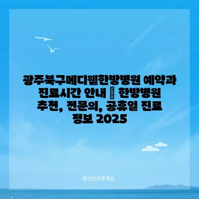 광주북구메디웰한방병원 예약과 진료시간 공지 | 한방병원 추천, 전연락, 공휴일 진료 정보 2025 에 대해 자주 묻는 질문 TOP 5