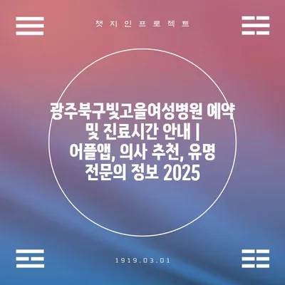 광주북구빛고을여성병원 예약 및 진료시간 공지 | 어플앱, 의사 추천, 유명 전연락 정보 2025