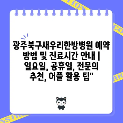 광주북구새우리한방병원 예약 방법 및 진료시간 안내 | 일요일, 공휴일, 전문의 추천, 어플 활용 팁”