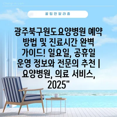 ✅ 광주북구 원도요양병원의 진료시간과 예약 방법을 지금 바로 알아보세요!