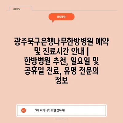 광주북구은행나무한방병원 예약 및 진료시간 공지 | 한방병원 추천, 일요일 및 공휴일 진료, 유명 전연락 정보 에 대해 자주 묻는 질문 TOP 5