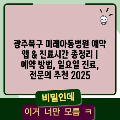 ✅ 광주북구 미래아동병원의 진료시간과 예약 방법을 지금 바로 알아보세요!