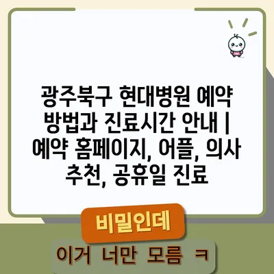 광주북구 현대병원의 진료시간과 예약 방법을 지금 바로 알아보세요.