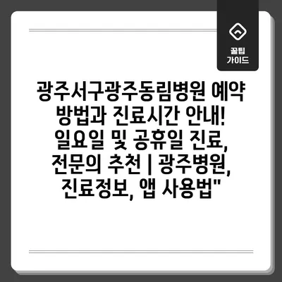✅ 광주동림병원의 진료시간과 예약 방법을 쉽게 알아보세요.