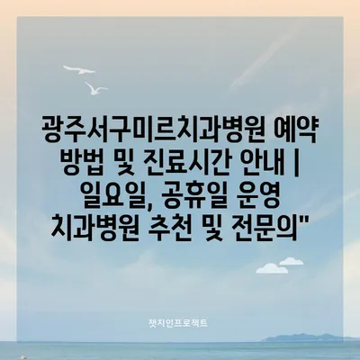 ✅ 광주서구미르치과병원의 진료시간과 예약 방법을 지금 바로 알아보세요!