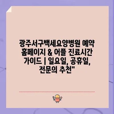✅ 광주서구백세요양병원의 예약 방법과 진료시간을 쉽게 알아보세요.