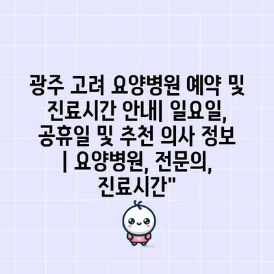 ✅ 광주 고려 요양병원의 진료시간 및 예약 방법을 확인해 보세요.