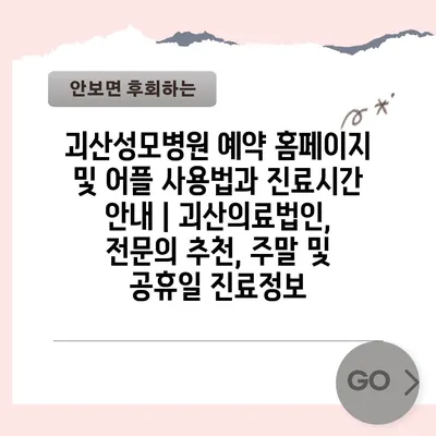 ✅ 괴산성모병원의 진료 시간과 예약 방법을 자세히 알아보세요.