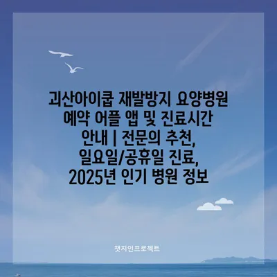 괴산아이쿱 재발방지 요양병원 예약 어플 앱 및 진료시간 공지 | 전연락 추천, 일요일/공휴일 진료, 2025년 인기 병원 정보 에 대해 자주 묻는 질문 TOP 5