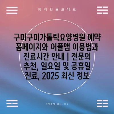 구미구미가톨릭요양병원 예약 홈페이지와 어플앱 이용법과 진료시간 공지 | 전연락 추천, 일요일 및 공휴일 진료, 2025 최신 정보 에 대해 자주 묻는 질문 TOP 5