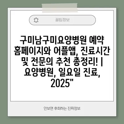 구미남구미요양병원 예약 홈페이지와 어플앱, 진료시간 및 전연락 추천 총정리! | 요양병원, 일요일 진료, 2025″ 에 대해 자주 묻는 질문 TOP 5