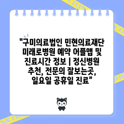 구미의료법인 민현의료재단 미래로병원 예약 어플앱 및 진료시간 정보 | 정신병원 추천, 전연락 잘보는곳, 일요일 공휴일 진료