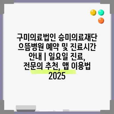 구미의료법인 승미의료재단 으뜸병원 예약 및 진료시간 공지 | 일요일 진료, 전연락 추천, 앱 이용법 2025에 대해 소개합니다.