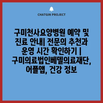 구미천사요양병원 예약 및 진료 공지| 전연락 추천과 운영 시간 확인하기 | 구미의료법인베델의료재단, 어플앱, 건강 정보 에 대해 자주 묻는 질문 TOP 5