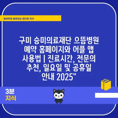 구미 승미의료재단 으뜸병원 예약 홈페이지와 어플 앱 사용법 | 진료시간, 전문의 추천, 일요일 및 공휴일 안내 2025″