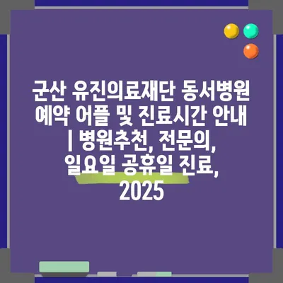 군산 유진의료재단 동서병원 예약 어플 및 진료시간 공지 | 병원추천, 전연락, 일요일 공휴일 진료, 2025 에 대해 자주 묻는 질문 TOP 5