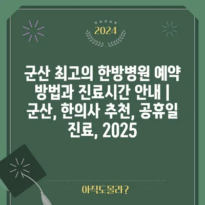군산 최고의 한방병원 예약 방법과 진료시간 공지 | 군산, 한의사 추천, 공휴일 진료, 2025 에 대해 자주 묻는 질문 TOP 5