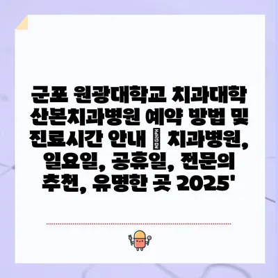 군포 원광대학교 치과대학 산본치과병원 예약 방법 및 진료시간 안내 | 치과병원, 일요일, 공휴일, 전문의 추천, 유명한 곳 2025′
