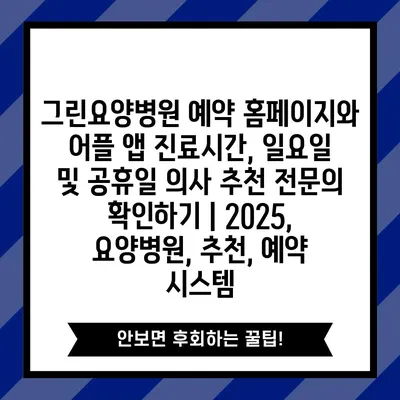 그린요양병원 예약 홈페이지와 어플 앱 진료시간, 일요일 및 공휴일 의사 추천 전연락 확인하기 | 2025, 요양병원, 추천, 예약 시스템 에 대해 자주 묻는 질문 TOP 5