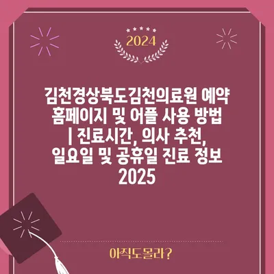 김천경상북도김천의료원 예약 홈페이지 및 어플 사용 방법 | 진료시간, 의사 추천, 일요일 및 공휴일 진료 정보 2025에 대해 알아보겠습니다.