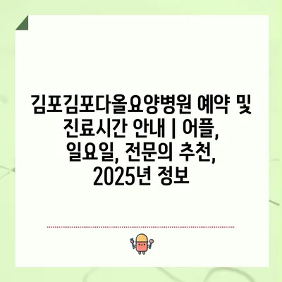 김포김포다올요양병원 예약 및 진료시간 안내 | 어플, 일요일, 전문의 추천, 2025년 정보