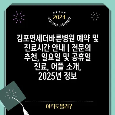 김포연세더바른병원 예약 및 진료시간 공지 | 전연락 추천, 일요일 및 공휴일 진료, 어플 소개, 2025년 정보 에 대해 자주 묻는 질문 TOP 5