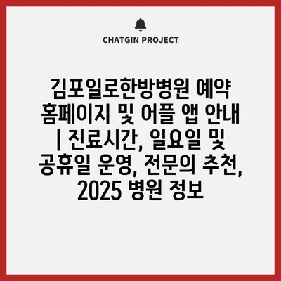 김포일로한방병원 예약 홈페이지 및 어플 앱 공지 | 진료시간, 일요일 및 공휴일 운영, 전연락 추천, 2025 병원 정보 에 대해 자주 묻는 질문 TOP 5